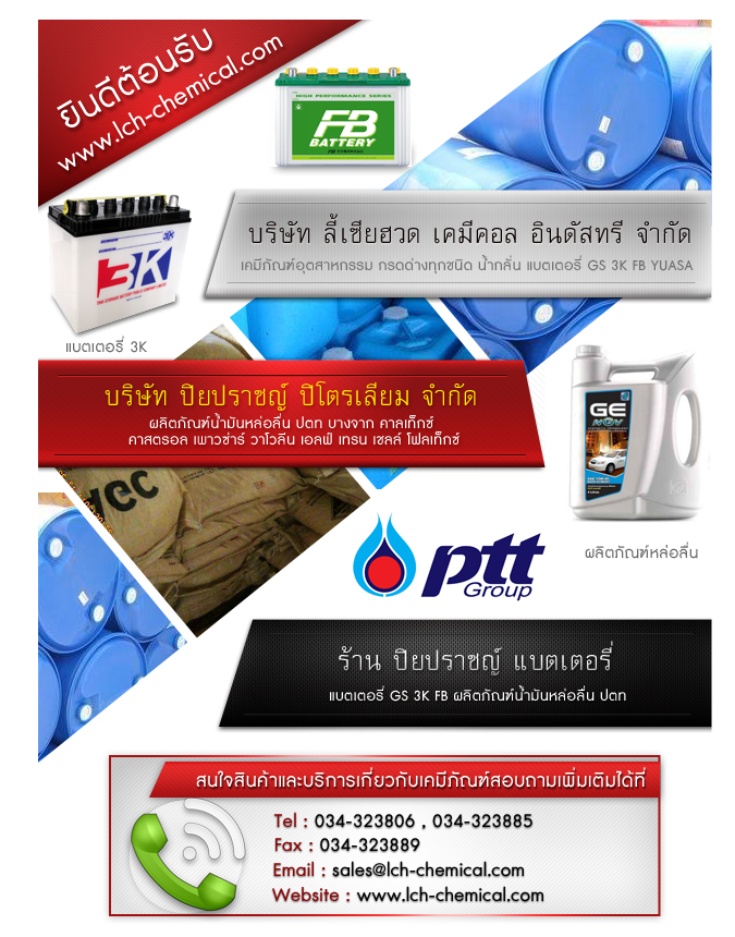 ผู้ผลิตน้ำกลั่น น้ำมันหล่อลื่น ผลิตภัณฑ์ยานยนต์ งานอุตสาหกรรมโดย บริษัท ลี้เซียฮวด เคมีคอล อินดัสทรี จำกัด